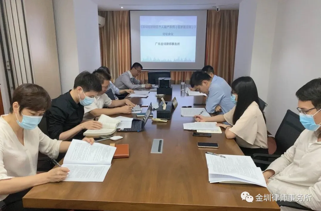 为响应深圳人大法工委的立法征求意见,作出律所作为专业机构在推动法治进程中的作用,2020年6月9日,广东金圳律师事务所召开《深圳经济特区个人破产条例(征求意见稿)》讨论会。