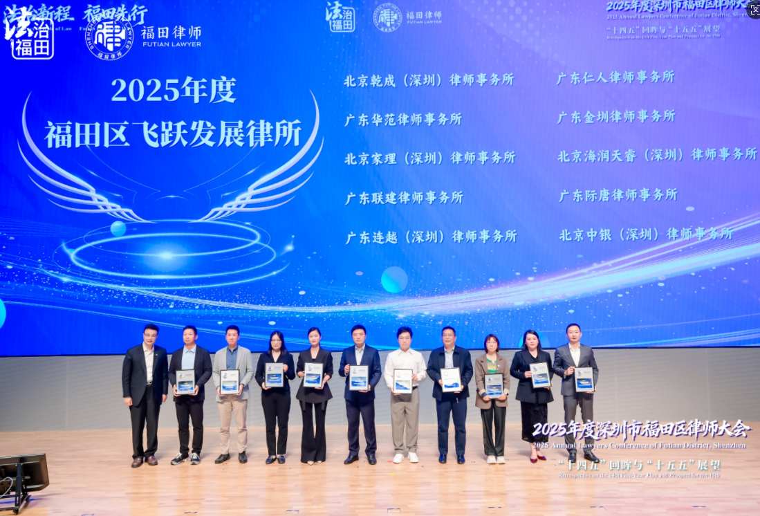 2025年12月19日,在深圳市福田区律师大会上,金圳律师事务所荣获“2025年度福田区飞跃发展律所”称号。这份荣誉,不仅是对过往耕耘的认可,更是面向未来的一份郑重期许.